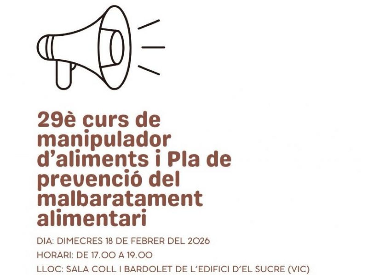 Comencem l’any amb una nova proposta formativa d’interès per als seus socis, de l'AEHT Osona-Moianès-Lluçanès. L’associació organitza un nou curs de manipulador d’aliments i pla de prevenció del malbaratament alimentari, una formació clau per garantir bones pràctiques i una gestió responsable dels aliments.