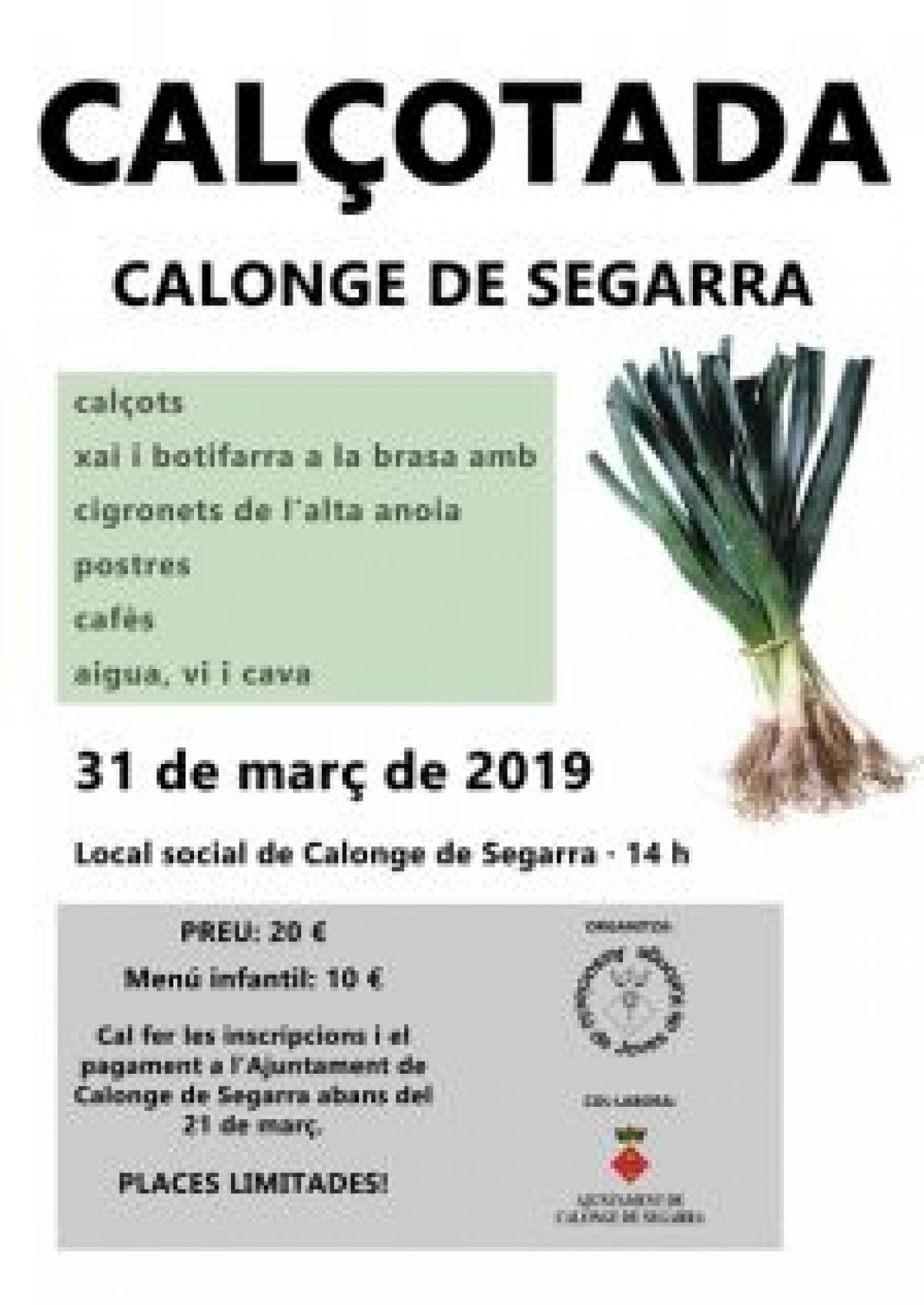 El menú consistirà en: calçots; xai i botifarra a la brasa; cigronets de l'Alta Anoia; postres; cafès; aigua; vi i cava. El preu de la calçotada és de 20 € i per als menuts hi haurà la possibilitat de fer menú infantil (10 €). Les inscripcions són obligatòries i s'han de fer abans del 21 de març a l'Ajuntament de Calonge de Segarra. Les places són limitades.