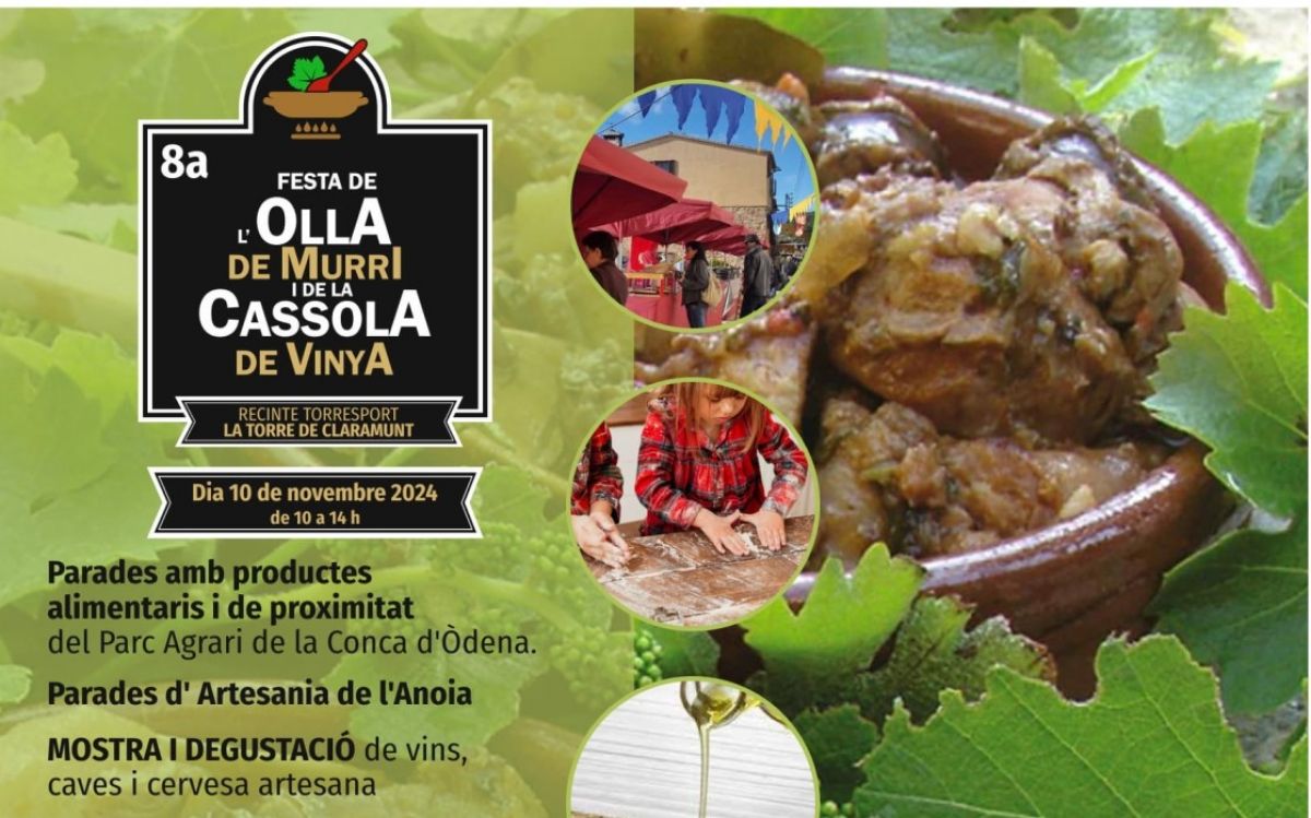 La Torre de Claramunt celebra la 8a Festa de la Cassola de Vinya, una nova jornada festiva lligada al poble, a la seva gastronomia, cultura i tradició. Serà el proper diumenge 10 de novembre, de 10 a 14 hores, al Recinte Torresport.